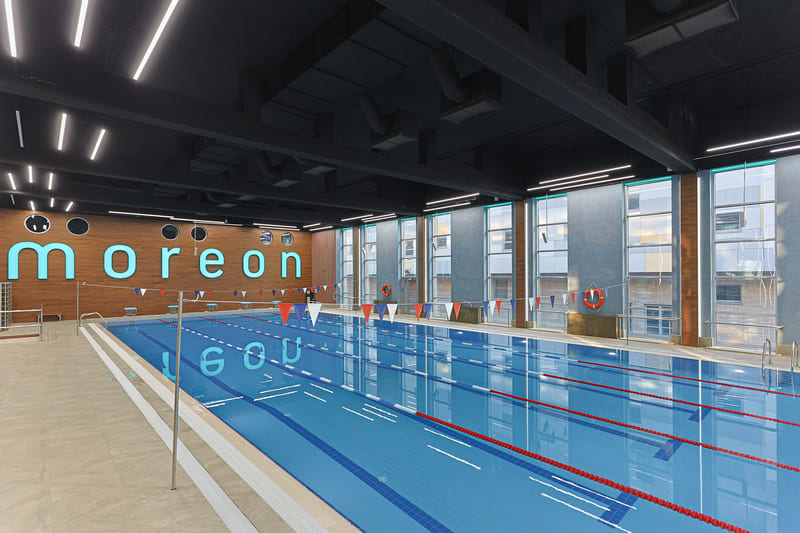 «Mореон Фитнес» – уникальное пространство для спорта, красоты и здоровья. Здесь находятся: тренажерный зал, спортивный бассейн, залы групповых программ, студия единоборств, студия RealRyder (сайкл), скалодром, детский клуб, банные комплексы.