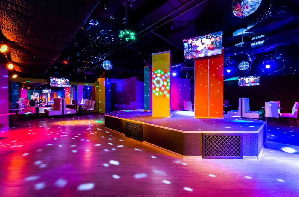 «Караоке Мореон» подойдет для небольшого мероприятия, банкета. Профессиональный звук и свет, открытая сцена, танцпол, клубная атмосфера, зеркальные стены и изысканная кухня.
