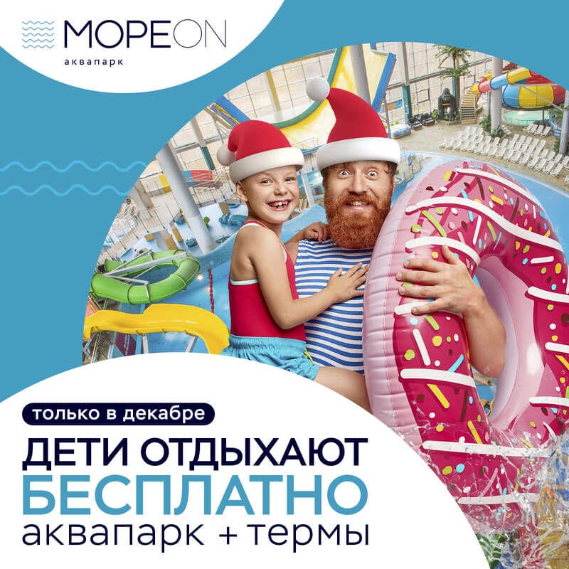 При покупке одного взрослого билета (18+) по тарифу "Аквапарк+Термы" (онлайн или на кассе), вы получаете бесплатный билет для ребенка до 150 см!