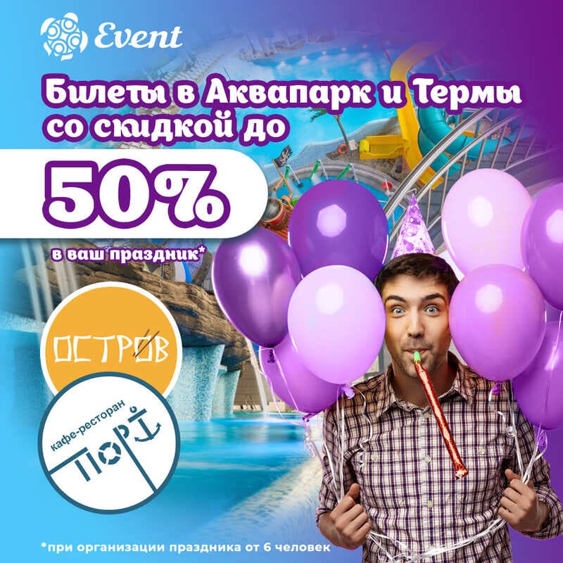 - Скидки 50% распространяется только на 1 билет именинника, действует в день рождения и 6 дней после