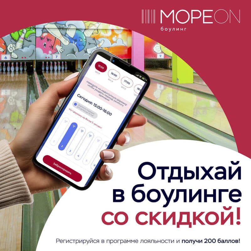 Забронировать дорожку можно на сайте https://bowling.more-on.ru/